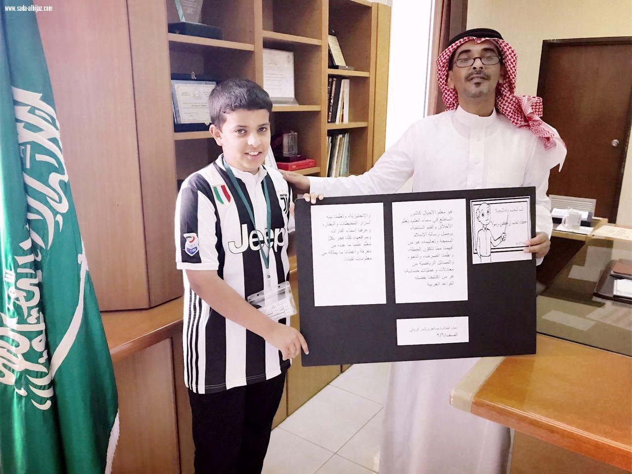 كما شارك أحد اولياء الأمور بكلمة للمعلم في يوم الإحتفاء به ذكر فيها مناقبه وشكر كل من كان له الفضل على تعليمه اثناء دراسته .